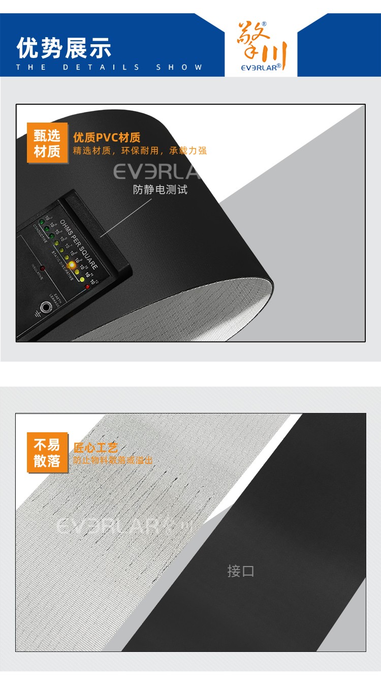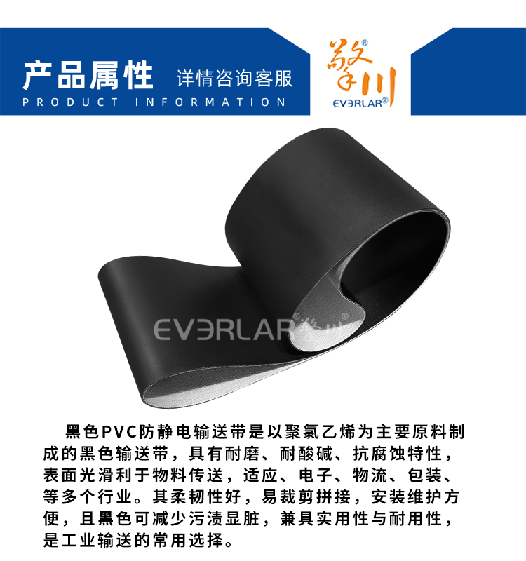 • 產品名稱:擎川EVERLAR黑色PVC防靜電輸送帶電子元件傳輸流水線工業(yè)皮帶定制