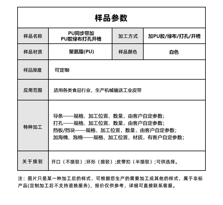 產(chǎn)品名稱:PU同步帶加PU膠綠布打孔開(kāi)槽精準(zhǔn)傳動(dòng)防滑包裝機(jī)械聚氨酯工業(yè)皮帶定制